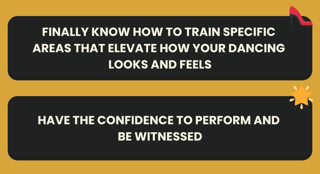 A mobility-focused training program for heels dancers ready to increase their range of motion, improve control, and move with more fluidity, confidence, and ease.